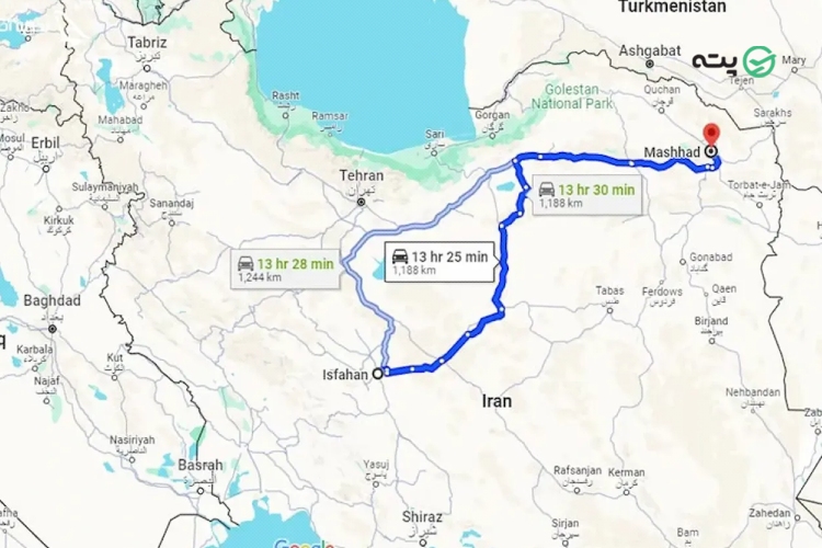 فاصله زمانی و مسافتی اصفهان تا مشهد