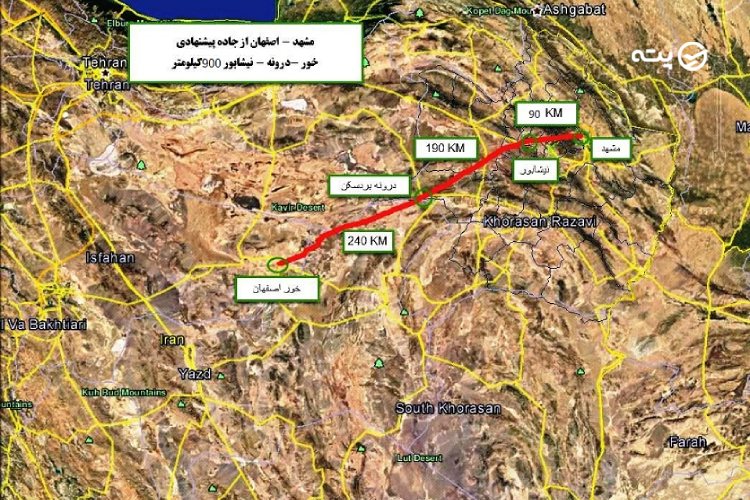 مسافت اصفهان تا مشهد در این مسیر حدود ۱۲۴۴ کیلومتر است، از استانهای قم و سمنان میگذرد و حدود ۱۳.۵ ساعت به طول میانجامد. برای شروع از آزادراه شرقی اصفهان به سمت نطنز حرکت کنید و پس از عبور از شهر کاشان، وارد استان قم شوید. در ادامه از شهرهای قم، گرمسار، سرخه، سمنان، دامغان، شاهرود، میامی، سبزوار و نیشابور عبور خواهید کرد. این مسیر به دلیل عبور از شهرهای بزرگتر، امکانات رفاهی بیشتری را در اختیار شما قرار میدهد و به طور کلی از جادههای بهتری برخوردار است.